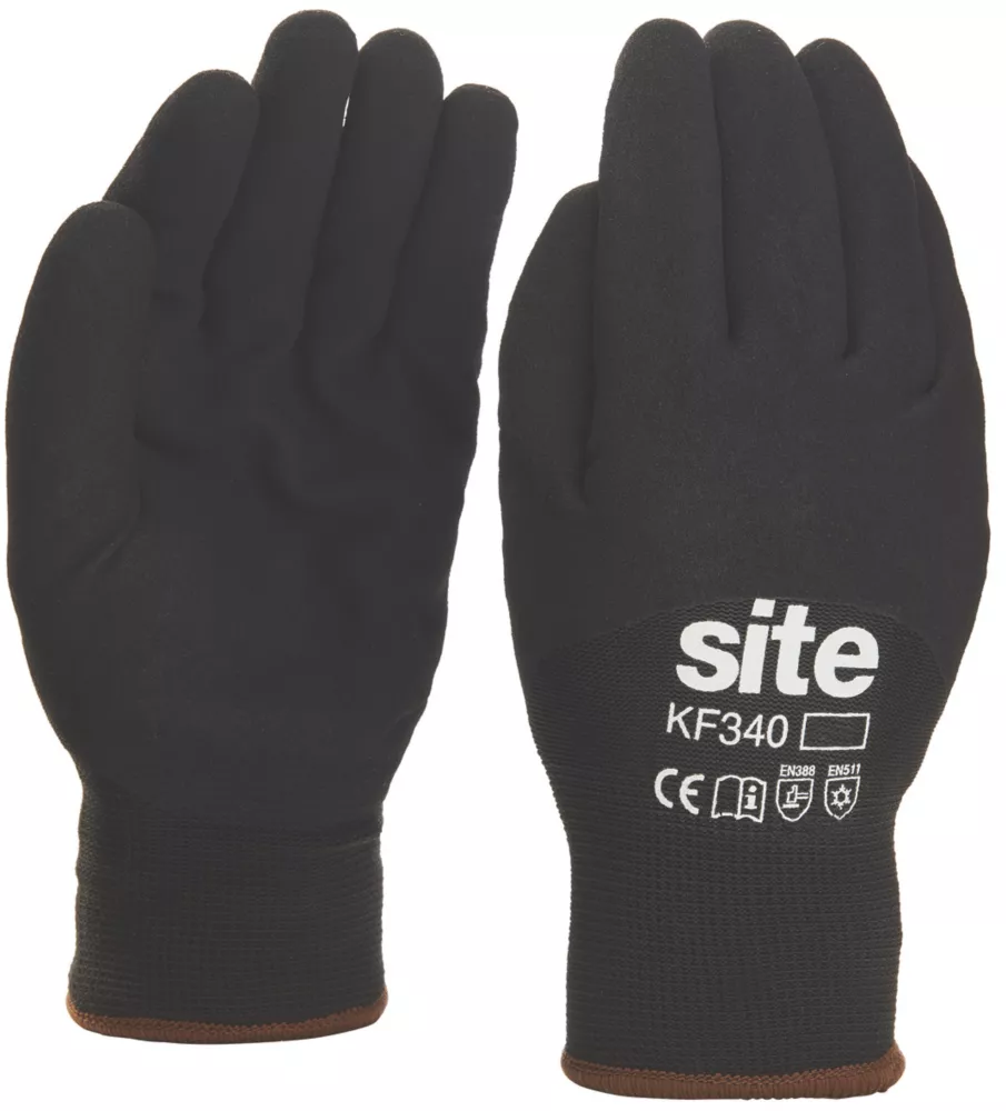 Thermal grip gloves with cushioning-effect nitrile foam coating on palm, knuckles and fingers for greater protection. Offers excellent grip in both wet and dry conditions.