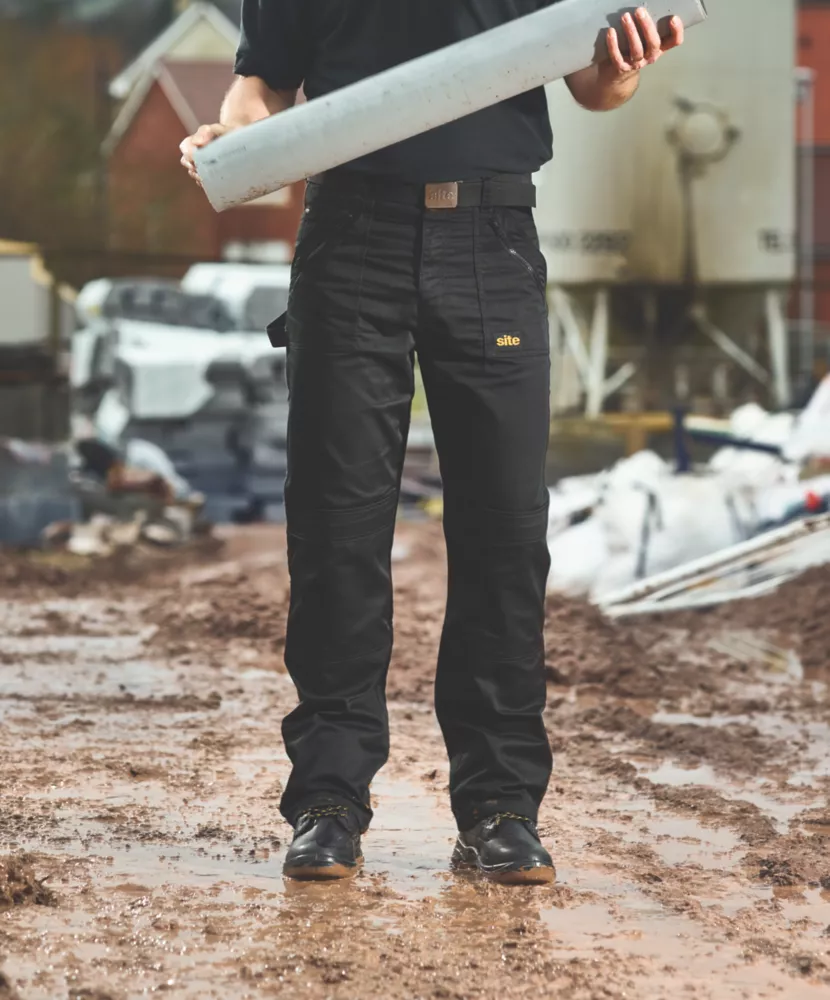 Flat-fronted trousers with top-loading knee pad pockets. 255g/m².