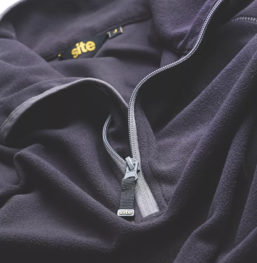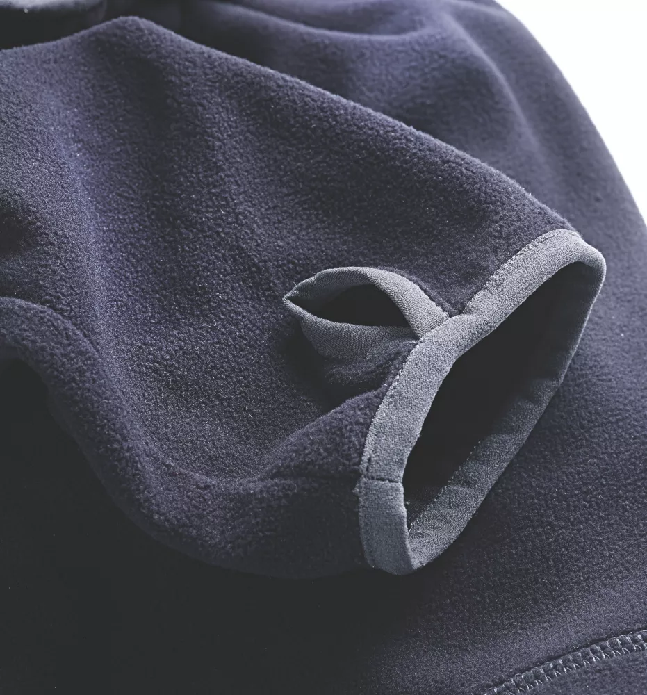 Lightweight microfleece pullover with elasticated thumb hole cuffs and half-front zip. 200g/m²