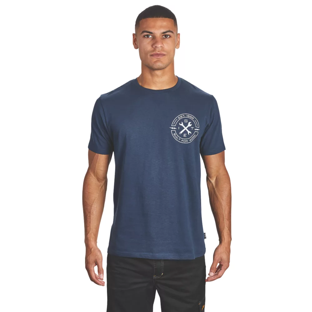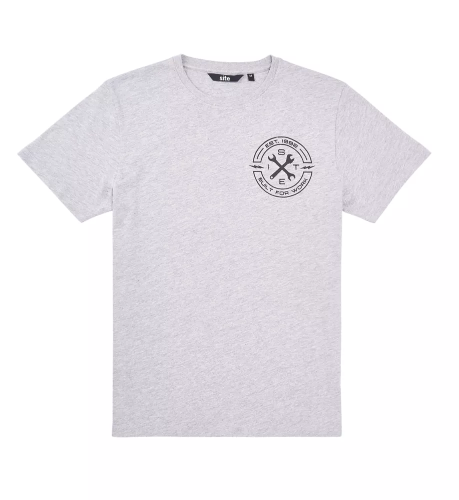 Short sleeve crew neck T-shirts with elasticated rib neckline and chest graphic. 160g/m².