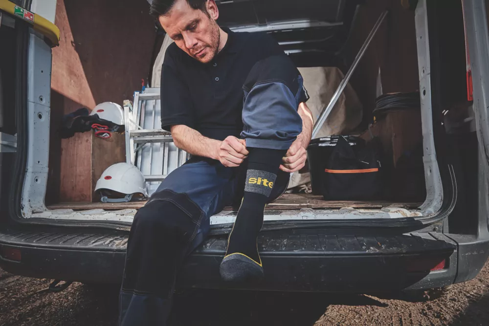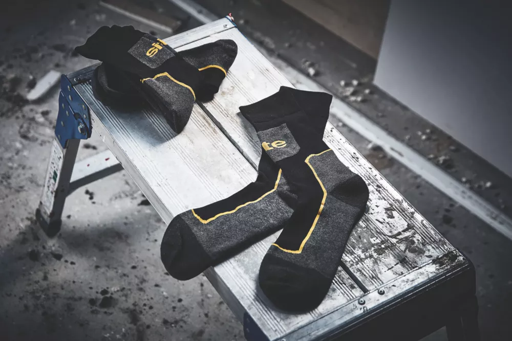 Black / Grey. Durable and comfortable work socks. Reinforced toe protection for steel toe cap footwear.