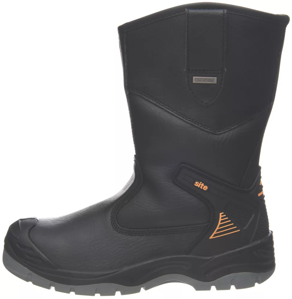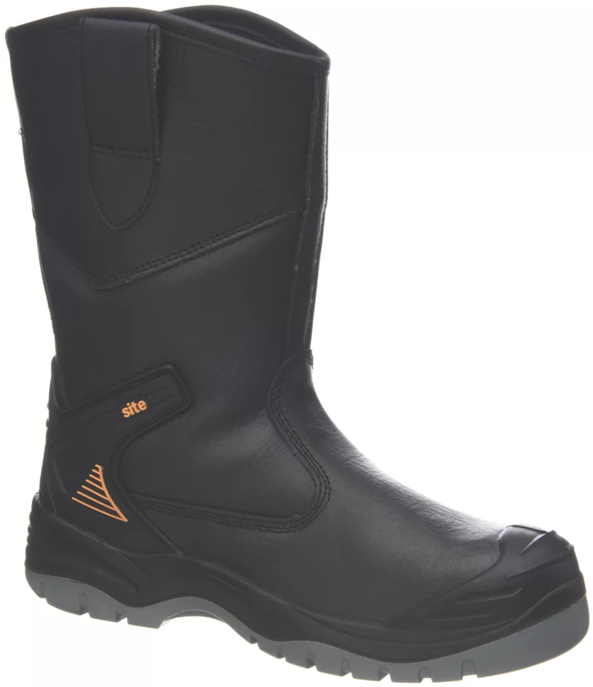Leather safety rigger boots with steel toe cap and steel penetration-resistant midsole. Waterproof and ideal for professional work on wet or muddy ground. Padded ankle for added comfort and support all day.